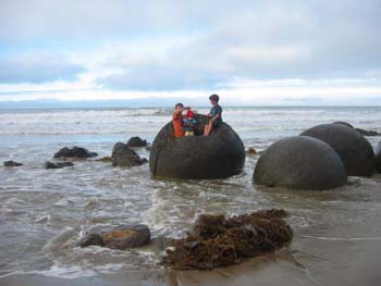 לאחר הסיור במפעל עצרנו לסיור קצר בתחנת הרכבת היפה שבעיר ומשם יצאנו מהעיר והמשכנו צפונה עד לחוף העיירה מוראקי, שם ראינו תופעת טבע מעניינת של גושי סלע גדולים בעלי מבנה עגול לגמרי הפזורים לאורך החוף. הילדים ניסו להגיע אל הסלעים יבשים ודי הצליחו בהתחלה אבל בסופו של דבר חזרנו לרכב רטובים ועם הרבה תמונות למזכרת.