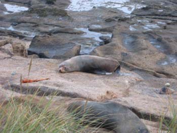 בסוף היום עצרנו לחניית לילה בחוף יפה בדרך וכאשר יצאנו לטיול קצר לאורך החוף, גילינו להפתעתנו שני כלבי ים שהחליטו לנוח על הסלעים ממש לידנו, הגענו עד למרחק של כמה מטרים מהם והיה מאד מרשים לראותם מקרוב.